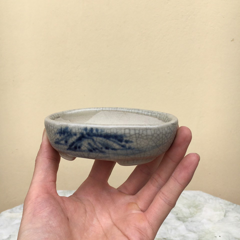 Chậu bonsai ovan mini men Rạn gốm Bát tràng 1 size BM-81