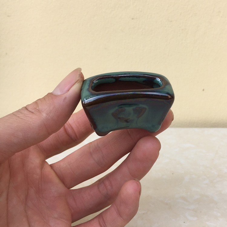 Chậu bonsai Quạt siêu mini men hỏa biến gốm Bát tràng 1 size BM-54