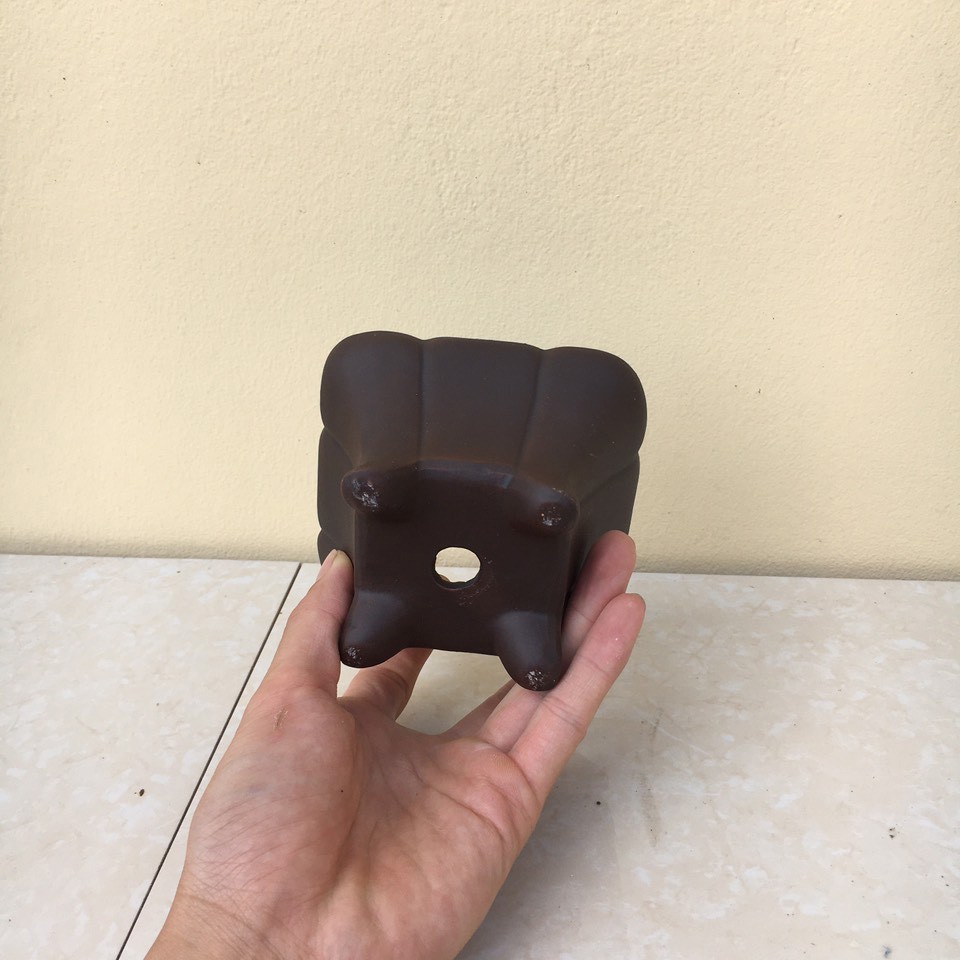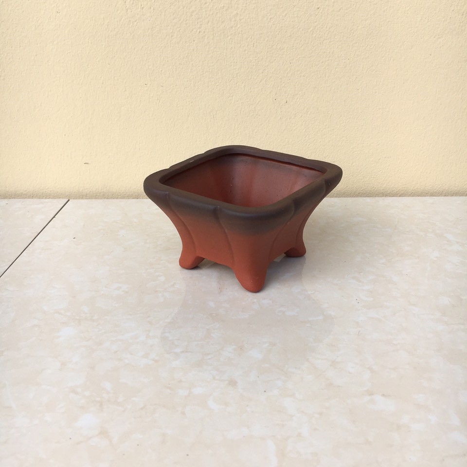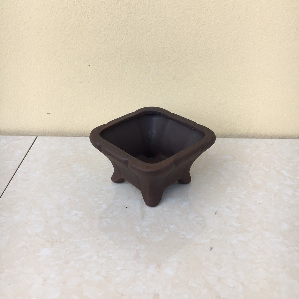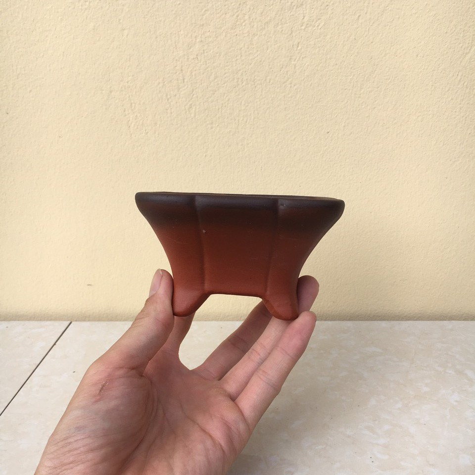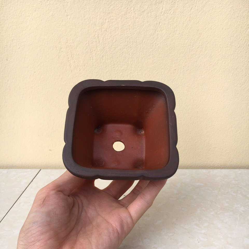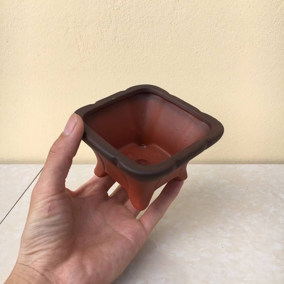 Chậu bonsai Vuông loe mini đất nung gốm Bát tràng 1 size BM-34