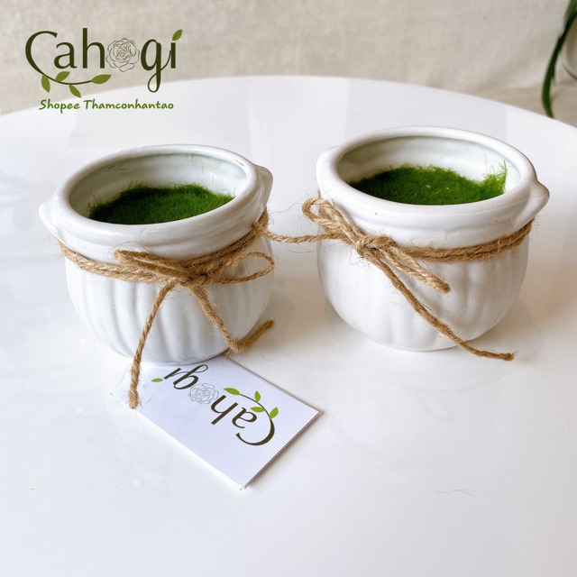 Chất liệu: chậu sứ nhồi xốp phủ cỏ giả