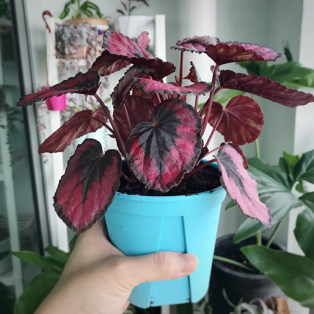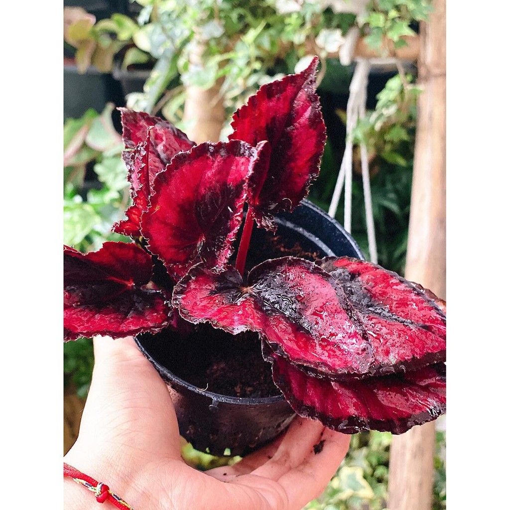 Chậu cây Begonia rex Red Kiss (Thu Hải Đường Nụ Hôn Đỏ) chậu nhựa