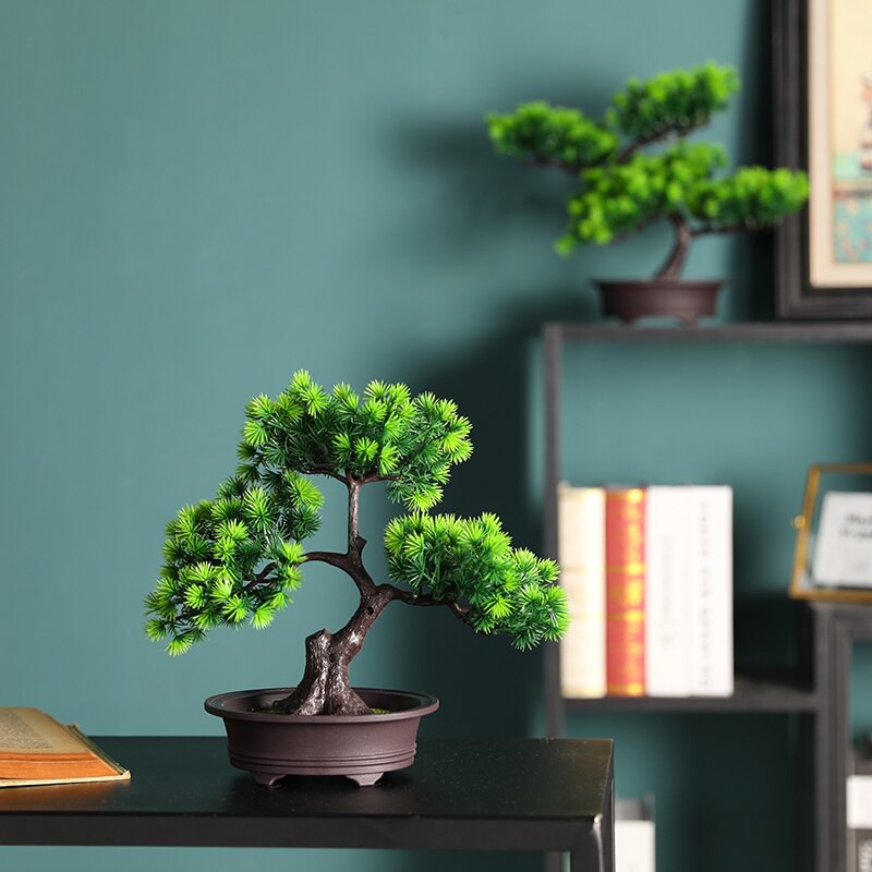 Giới thiệu Chậu cây cảnh giả, cây thông bonsai xanh mát giống thật trang trí bàn, kệ tủ, tiểu cảnh Anzzar-02