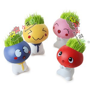 Chậu cây cảnh mini hình người đáng yêu, tặng kèm đất và hạt giống cỏ tóc, mẫu chậu cỏ tóc để bàn