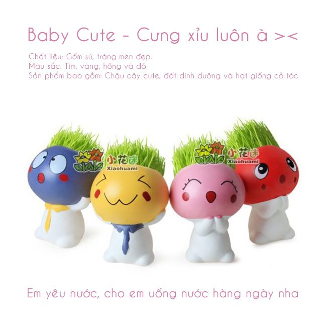 Sản phẩm đã bao gồm 1 chậu, 1 gói đất, 1 gói hạt cỏ tóc.