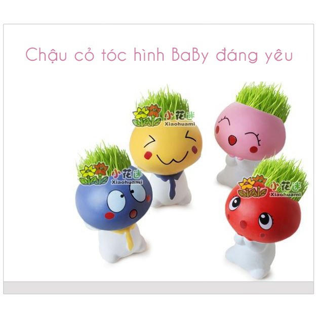 Giới thiệu Chậu cây cảnh mini hình người đáng yêu, tặng kèm đất và hạt giống cỏ tóc, mẫu chậu cỏ tóc để bàn