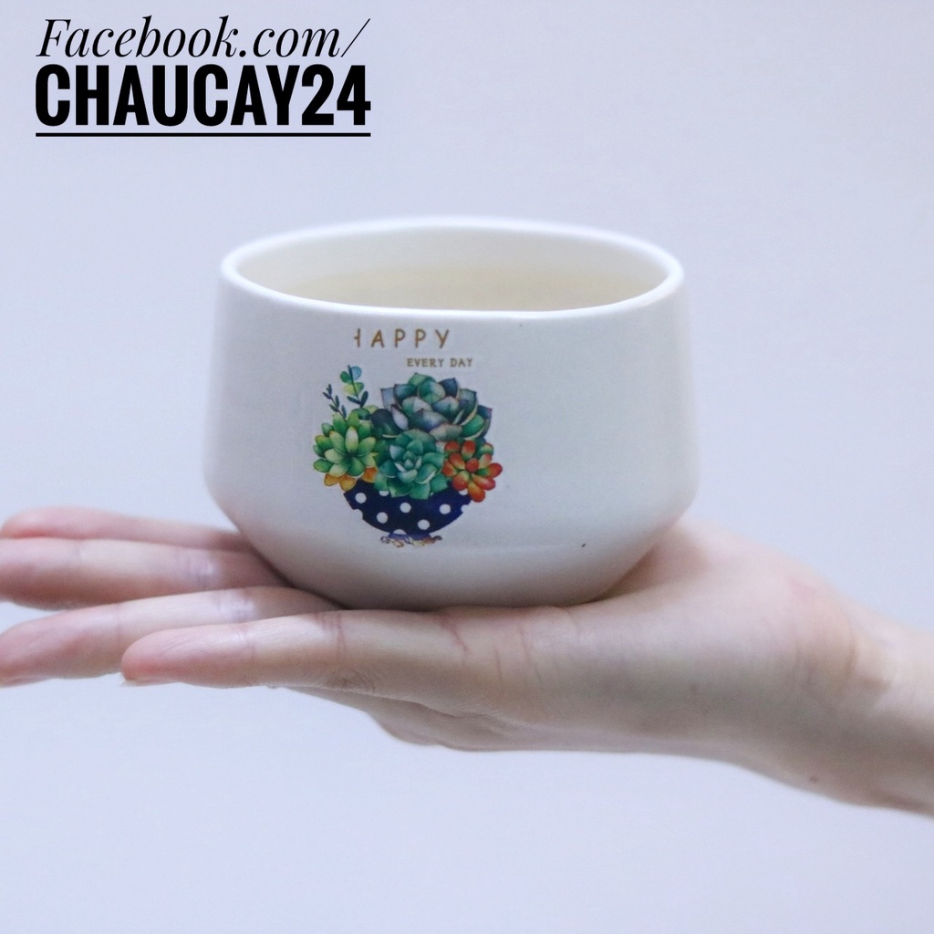 - Kích thước chậu: Lớn (12 x 8.5 cm, DK miệng là 11 cm), Nhỏ (9 x 6 cm, DK miệng là 8 cm)