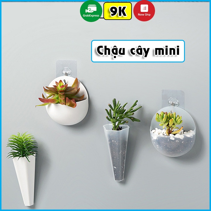 Chậu Cây Cảnh Mini Treo Tường Trang Trí Phòng Tặng Kèm Móc Dán Tường