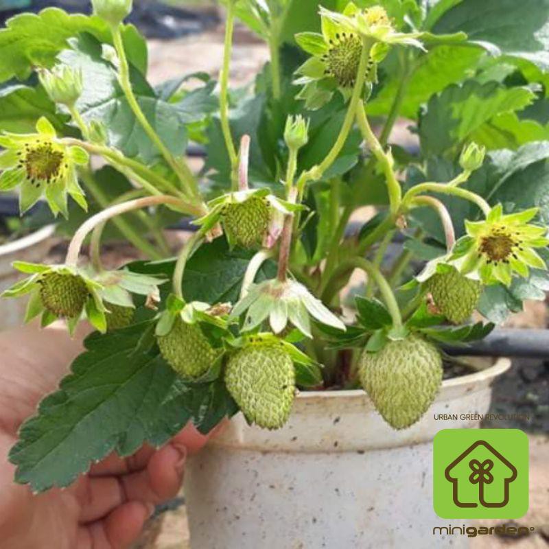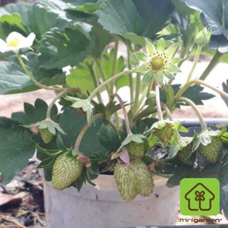 Chậu Cây Dâu Tây Nhật Hana lớn đang hoa quả như hình