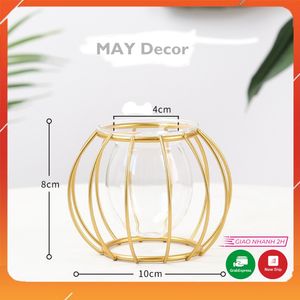 ✔ Chậu cây để bàn mini khung sắt trồng cây thông minh thủy tinh sáng tạo cho bàn làm việc đẹp độc lạ | MAY decor | Mã CC02