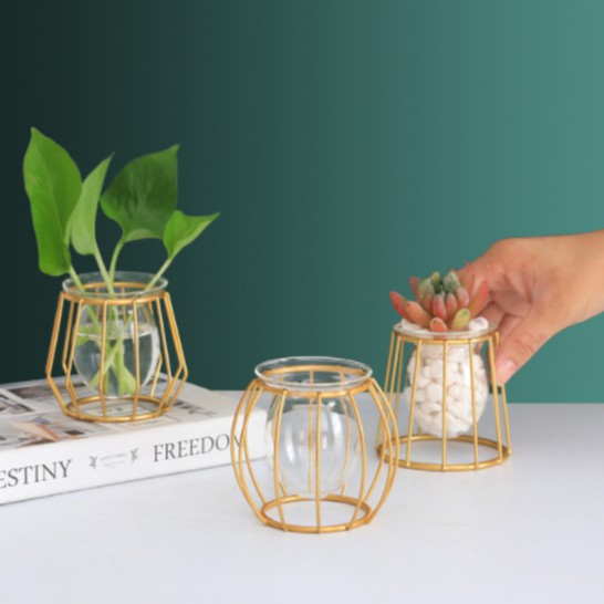 Nhà cửa & Đời sống > Làm vườn > Chậu cây || Chậu cây để bàn mini khung sắt trồng cây thông minh thủy tinh sáng tạo cho bàn làm việc đẹp độc lạ LizflowerCòn hàng