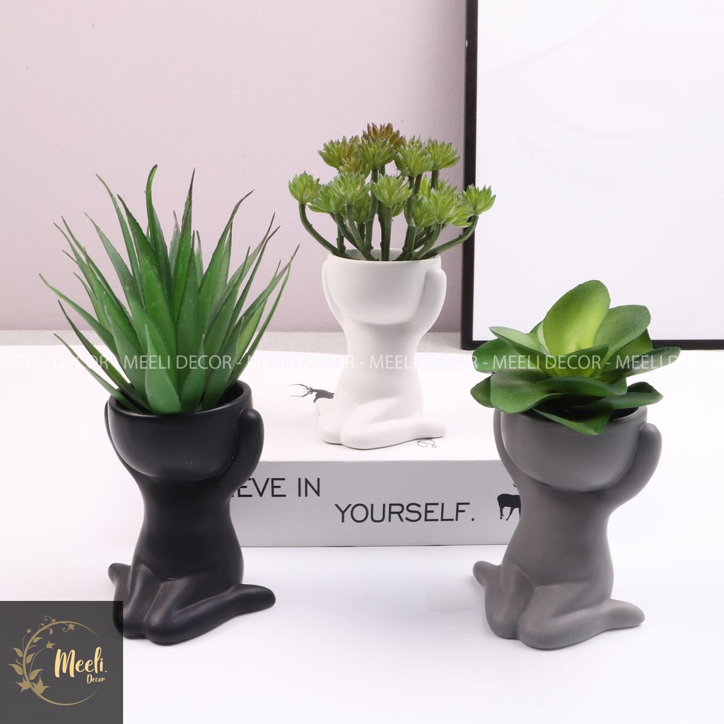 Nhà cửa & Đời sống > Làm vườn > Chậu cây || Chậu cây để bàn mini Meeli Decor hình nhân ngộ nghĩnh trang trí sáng tạo, ME12Còn hàng