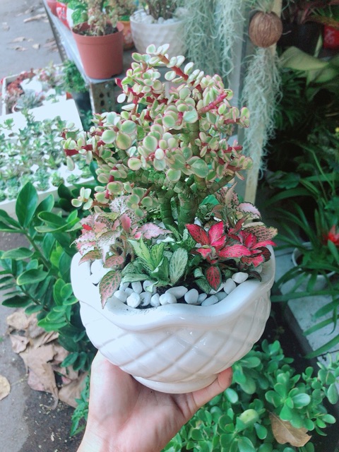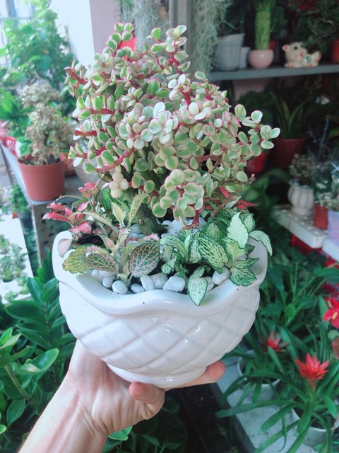 Nhà cửa & Đời sống > Làm vườn > Cây cảnh || Chậu Cây Đô La Hồng +Cây Cẩm Nhung (cây lá may mắn)Còn hàng