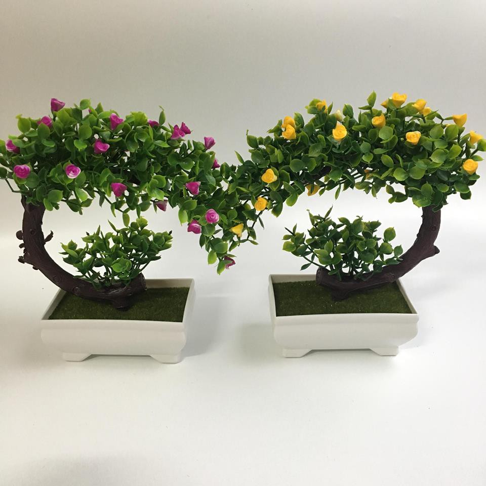 Nhà cửa & Đời sống > Trang trí nhà cửa > Hoa trang trí || Chậu cây giả có hoa thế bon sai độc đáo để bàn, kệ tủ trang trí nhà cửa ( kèm chậu nhựa)Còn hàng