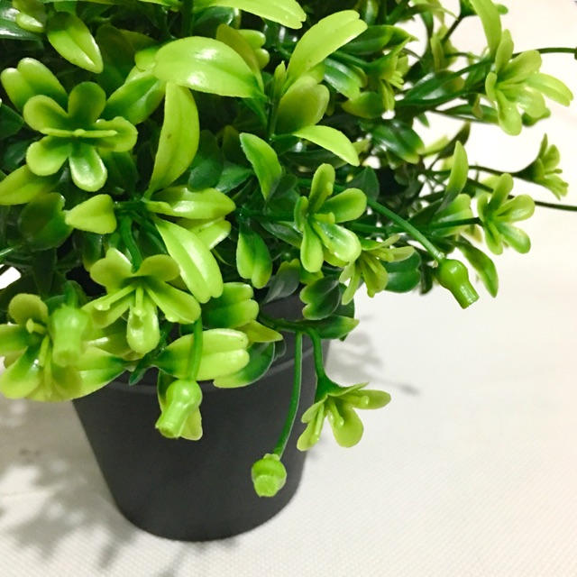 Chậu cây giả để bàn Fikidz🚩Chậu nhựa đen thành dày tới 3mm, màu đen sần sang trọng