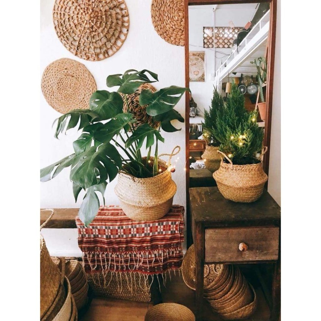 Nhà cửa & Đời sống > Làm vườn > Chậu cây || Chậu cây giả, giỏ cói trồng cây cảnh trong nhà cỡ lớn có quai xách decor vintage thân thiện môi trường GC-01Còn hàng