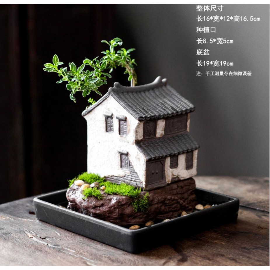 Chậu Cây Gốm Sứ Hình Nhà Cổ (Không Kèm Cây) Trang Trí Tiểu Cảnh, Cây Hoa Kiểng, Cây Văn Phòng, Cây Bonsai, Quà Tặng
