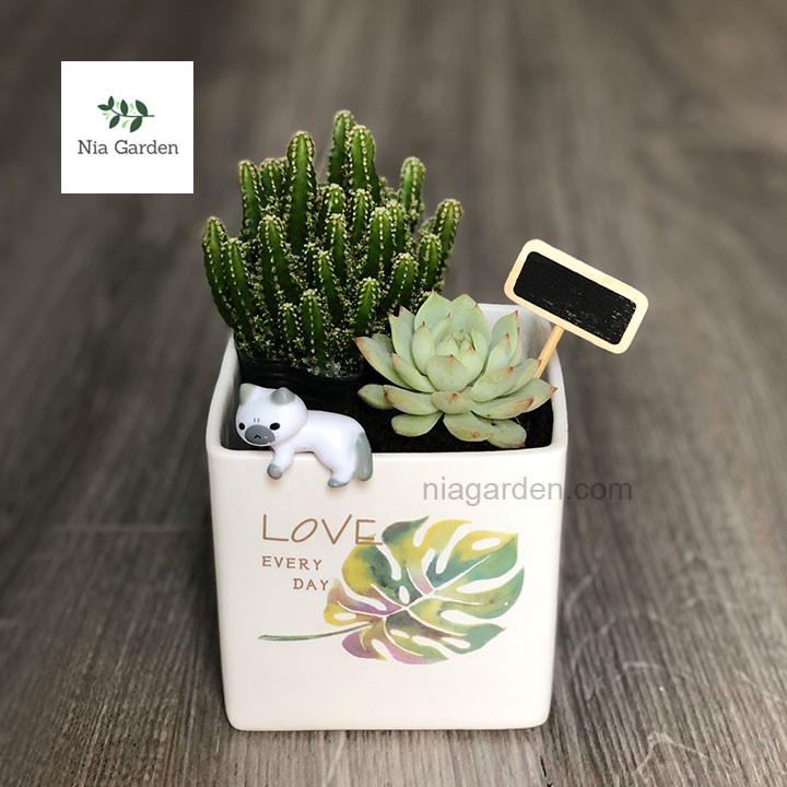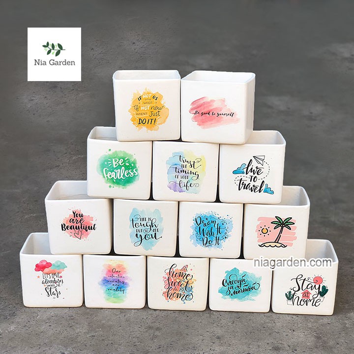 Nhà cửa & Đời sống > Làm vườn > Chậu cây || Chậu cây gốm sứ in hình, vuông để bàn - CVICòn hàng