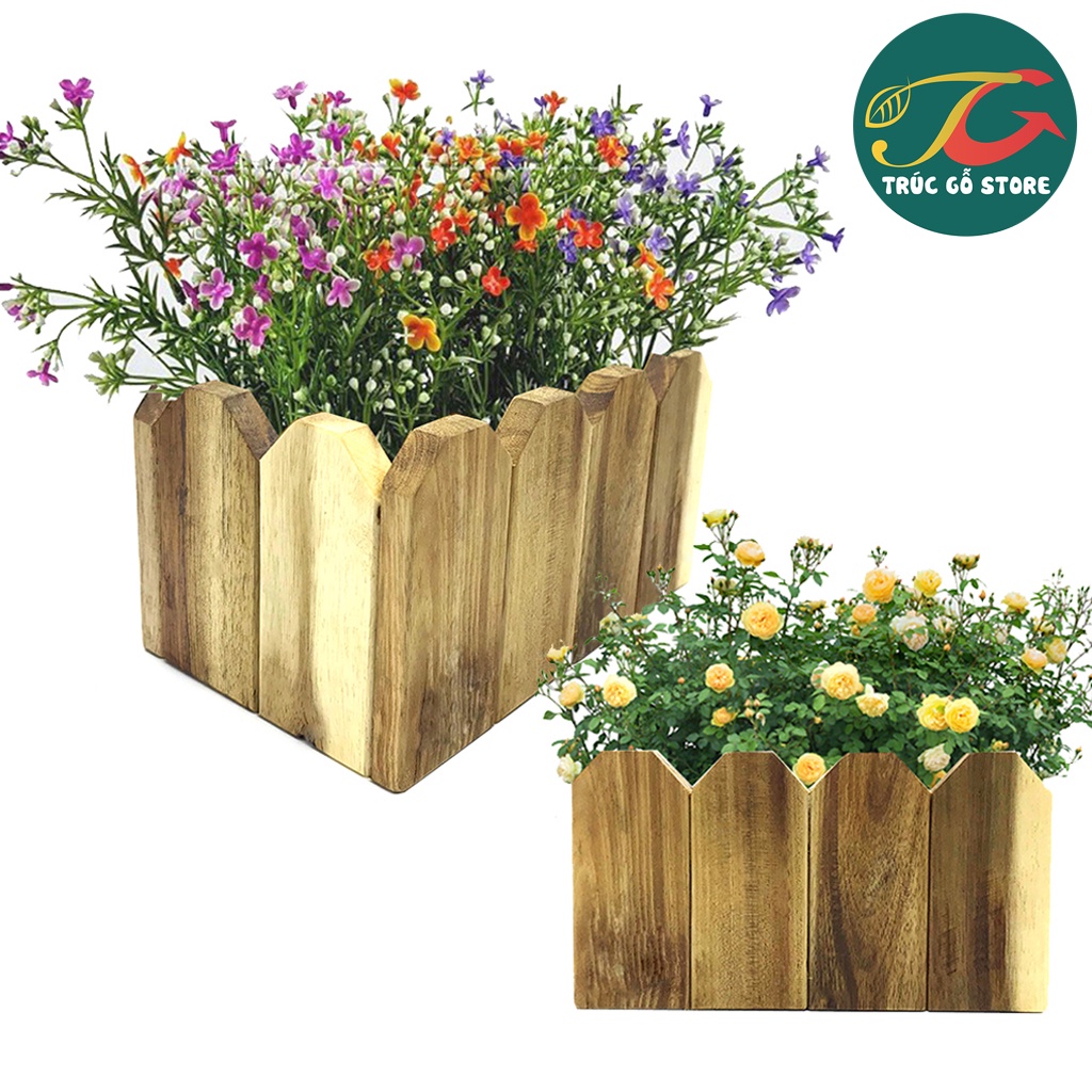 Chậu cây hàng rào gỗ chữ nhật 18x12x10 trồng sen đá, tiểu cảnh, đã qua xử lý chống nước, bền bỉ với thời gian