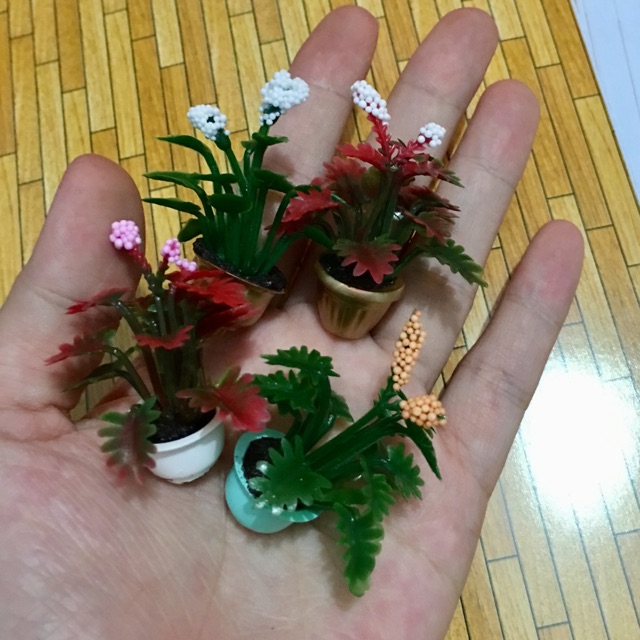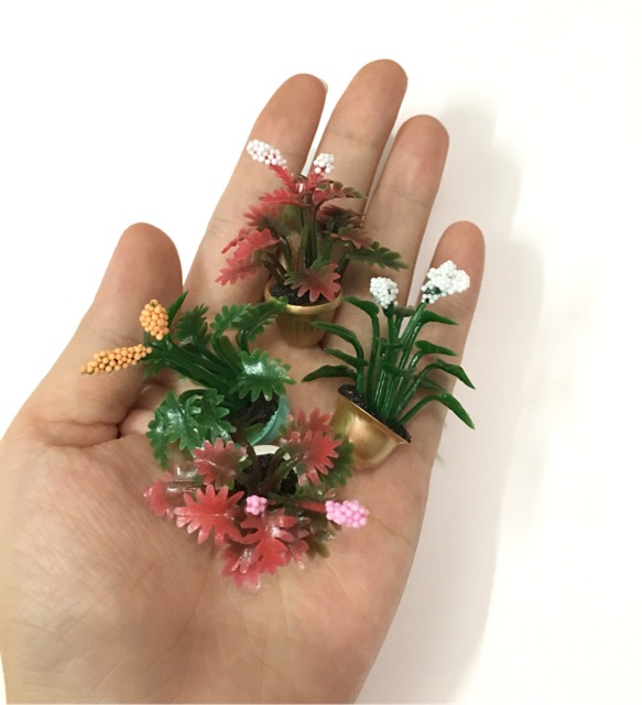 Chậu cây dùng trang trí nhà mô hình, nhà tăm...Giá bán:15k/chậu gồm hoa và chậu như hình