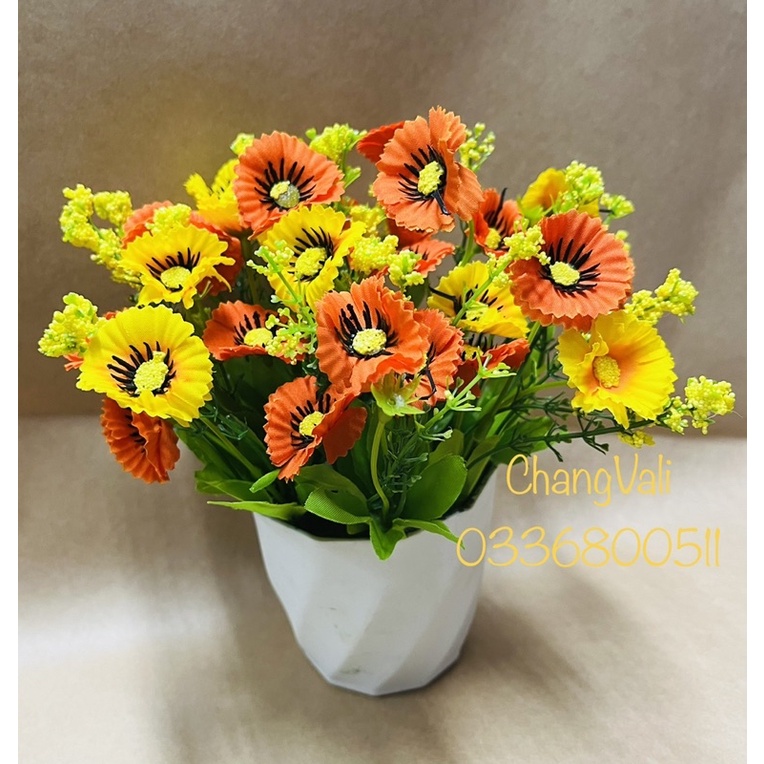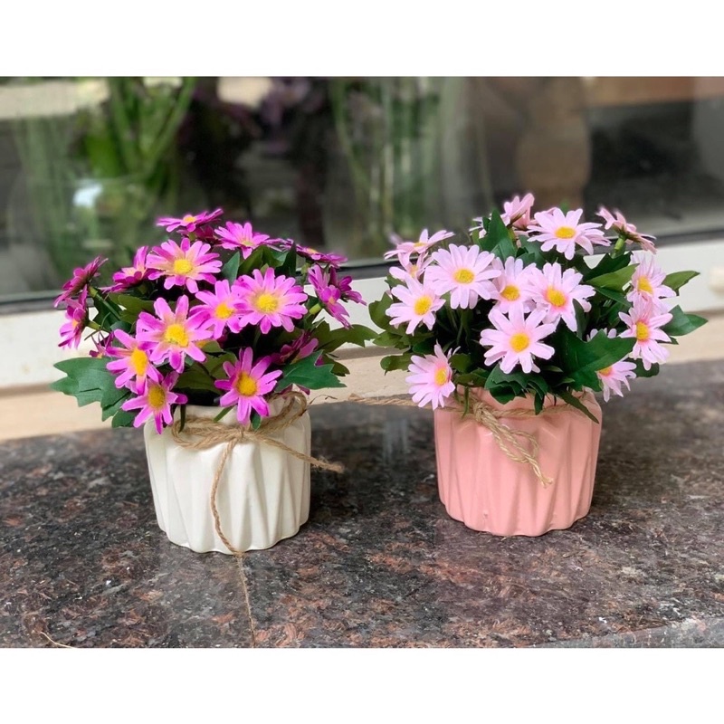 Chậu cây hoa nhí để bàn ,trang trí dercor cực xinhSản phầm gồm chậu và cây hoa trang trí sẵn như hình