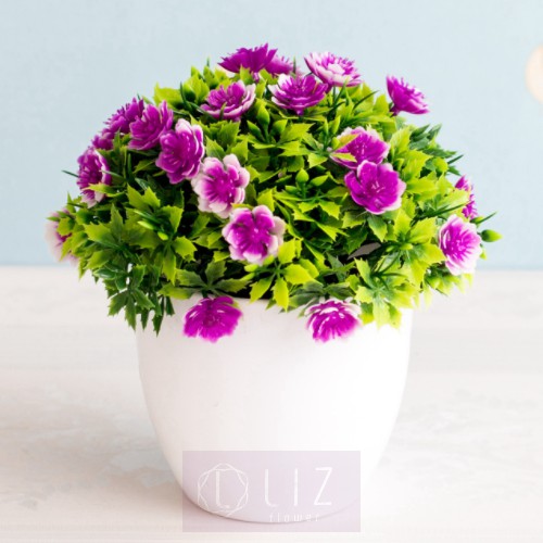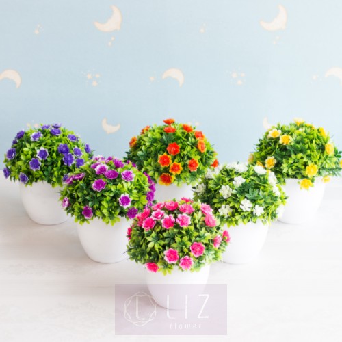 Chậu Cây Hoa Tuyết (Kèm Chậu Tròn) - Cây Giả Trang Trí Nhà Cửa Đủ Màu Sắc thích hợp decor nhà cửa, Lizflower [A13_D3]