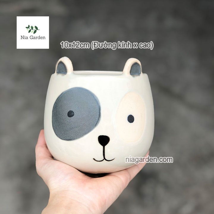 Chậu cây men rạn chó xám mắt tròn trồng cây để bàn Nia Garden N4