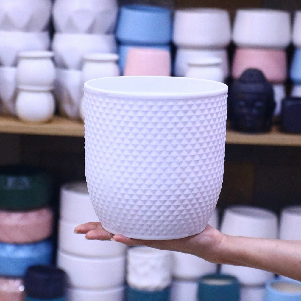 Chậu cây men sứ trắng nhiều loại họa tiết (CHỈ GIAO HCM) trồng cây cảnh nội thất, cây văn phòng, cây hoa kiểng