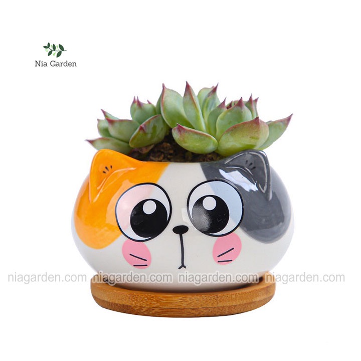 Chậu cây mèo mini trồng sen đá, xương rồng nhỏ - CTK