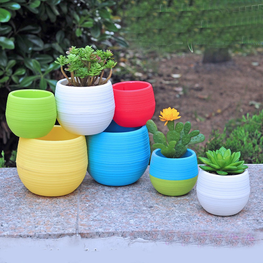 Bộ chậu hoa kiểu dáng đáng yêu, với nhiều màu sắc khác nhau và được làm từ chất liệu cao cấp