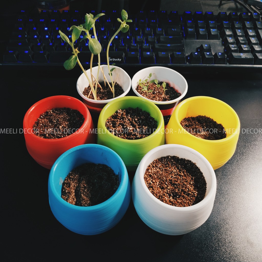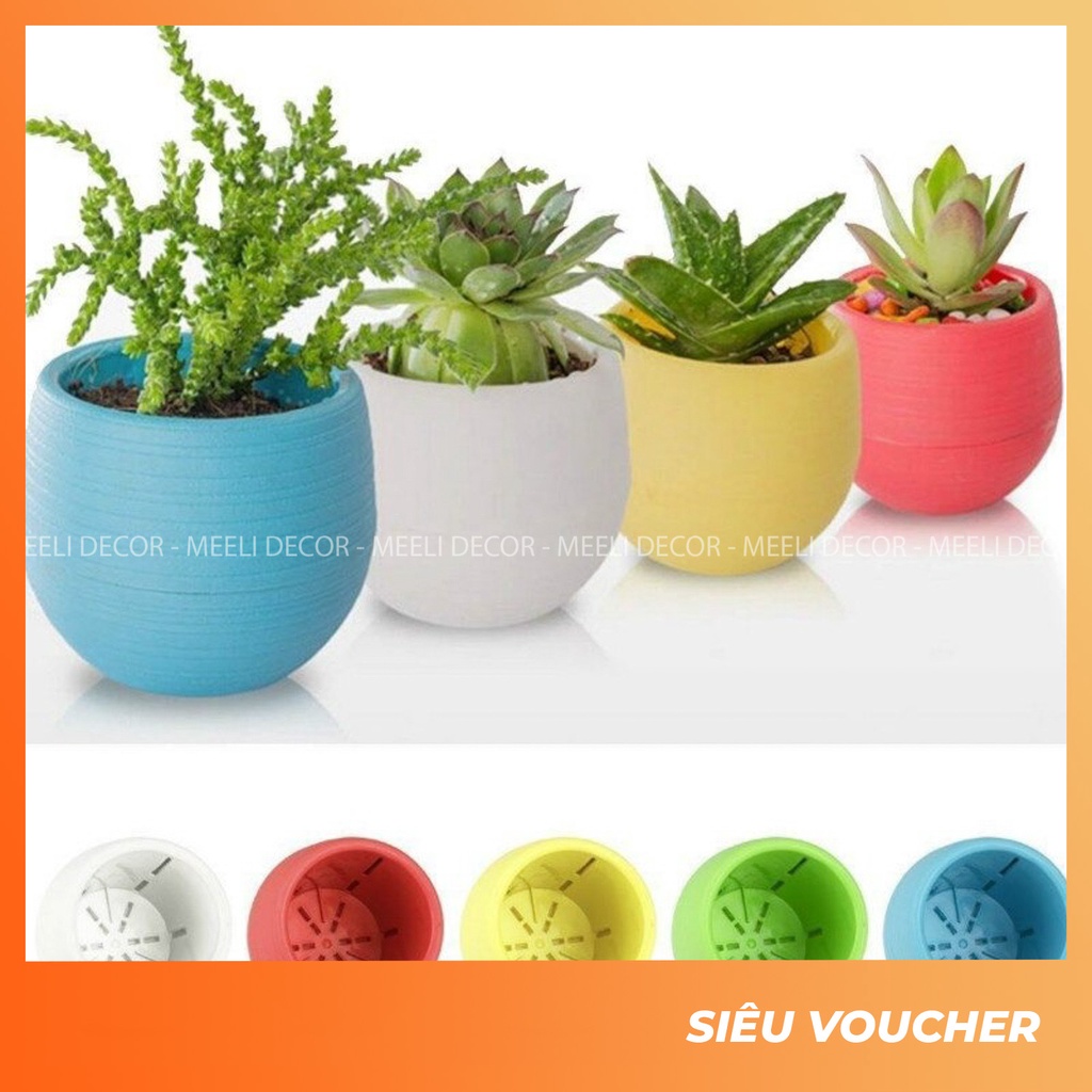 Nhà cửa & Đời sống > Làm vườn > Chậu cây || Chậu cây nhựa mini để bàn chống ngập úng, nhiều màu xinh xắn giá rẻ - Meeli DecorCòn hàng