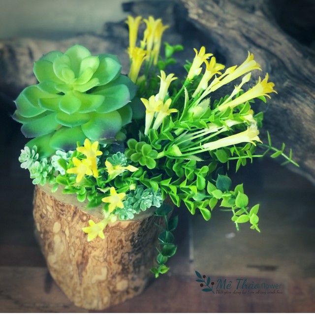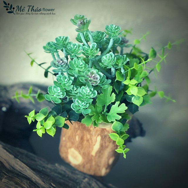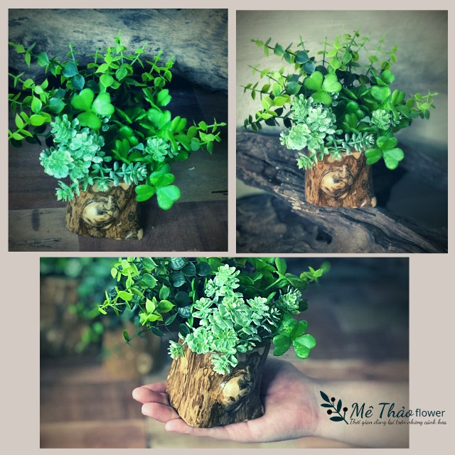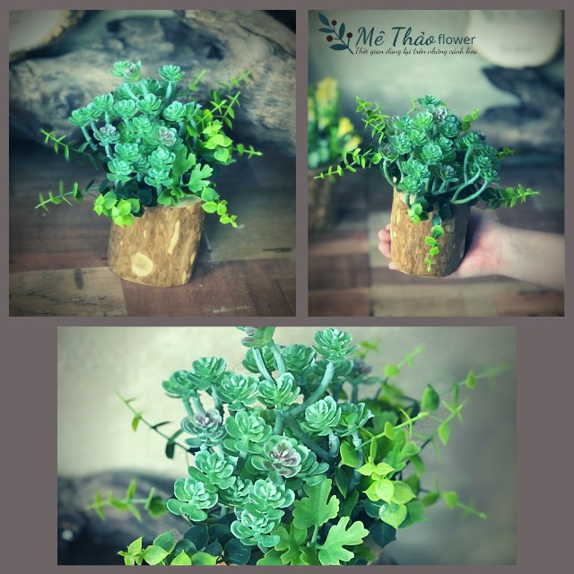 Chậu Cây Sen Đá Giả Để Bàn Kèm Chậu Gỗ Chất Liệu Cao Cấp Trang Trí Nhà Cửa, Decor Phòng Khách Chất Liệu Lụa Cao CấpChỉ một chút thay đổi cũng làm nên điều kì diệu. thay vì những chậu sứ thông thường, Mê Thảo đã dùng những khúc gỗ tự nhiên làm chậu cho mẫu sen đá mới nhất hứa hẹn mang đến cho khách hàng bất ngờ thú vị.