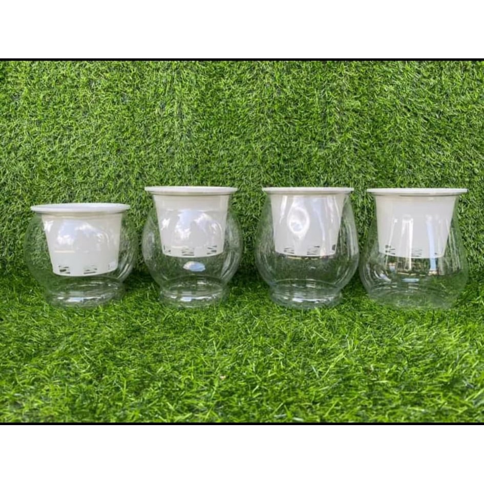 Chậu nhựa trồng cây thủy sinh, thủy canh; bình trồng cây thủy sinh, lọ trồng cây bằng nhựa trong suốtBộ sản phẩm gồm: 1 bình nhựa trong + khay trắng + bấc hút nước