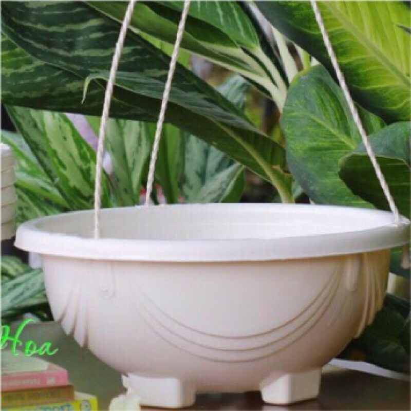Đường kính 28 cm cao 15cm . Độ bền cao nhiều màu sắc, thích hợp để trồng các loại cây rũ, dạ yến thảo..... Bao gồm cả chậu và dây!