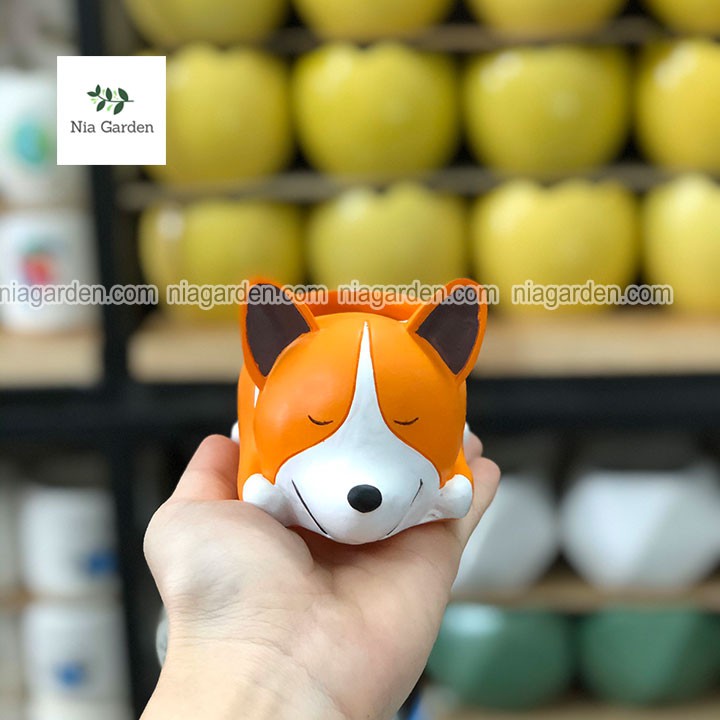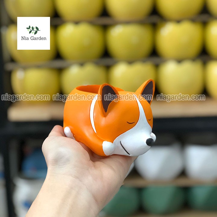 Chậu chó Corgi cam trồng sen đá xương rồng mini để bàn Nia Garden N4