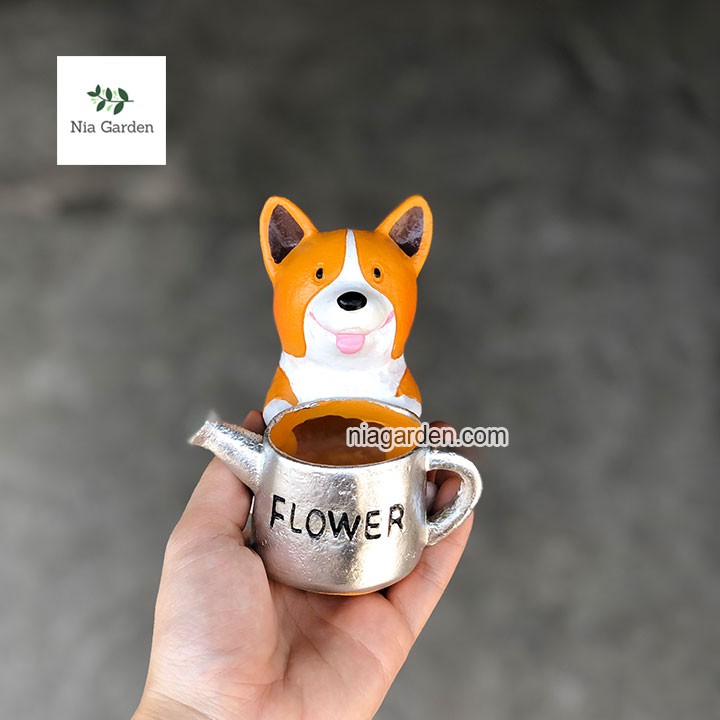 Nhà cửa & Đời sống > Làm vườn > Chậu cây || Chậu chó Corgi ôm bình tưới trồng sen đá xương rồng Nia Garden N4Còn hàng