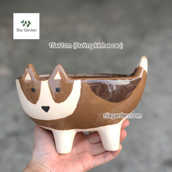 Chậu chó nâu bằng sứ trồng cây mini sen đá xương rồng nhỏ để bàn Nia Garden N4