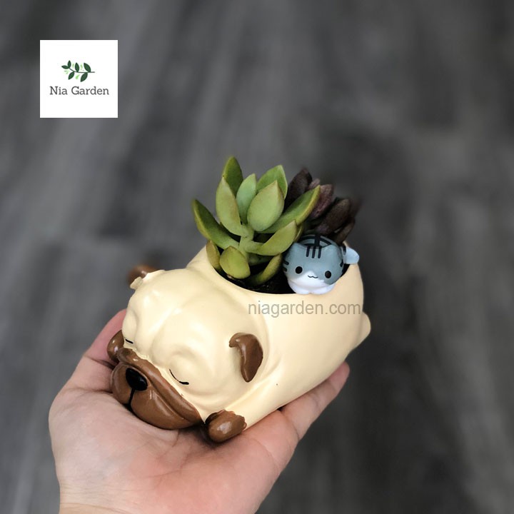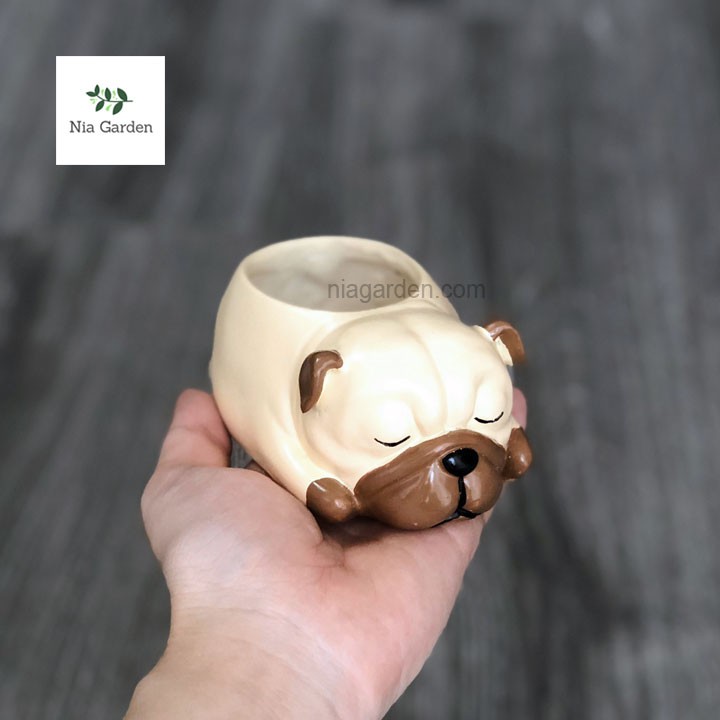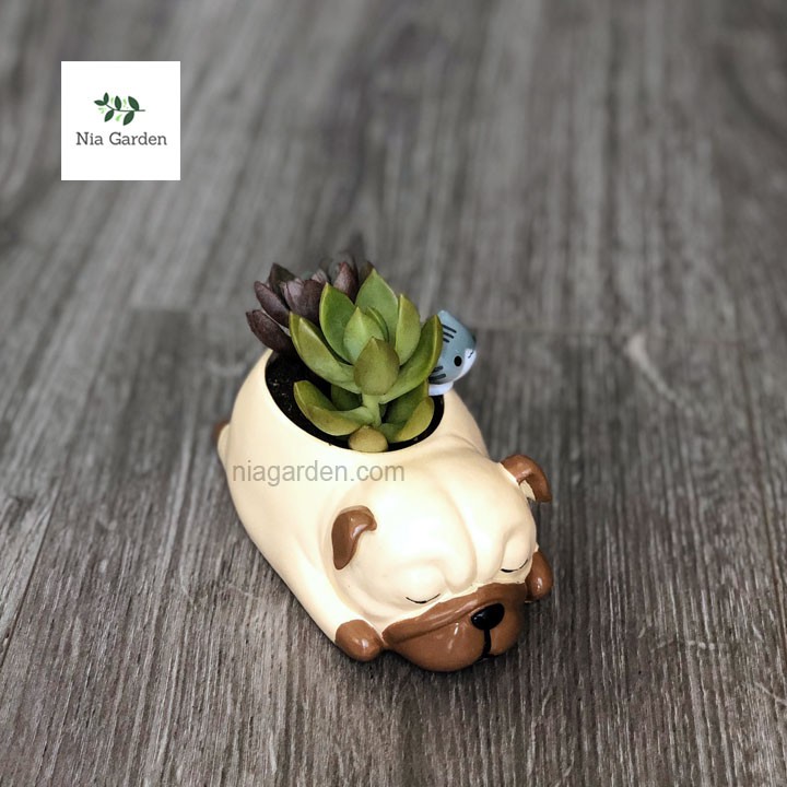 Chậu chó Pug ngủ chậu nhựa trồng cây để bàn sen đá mini xương rồng Nia Garden N4