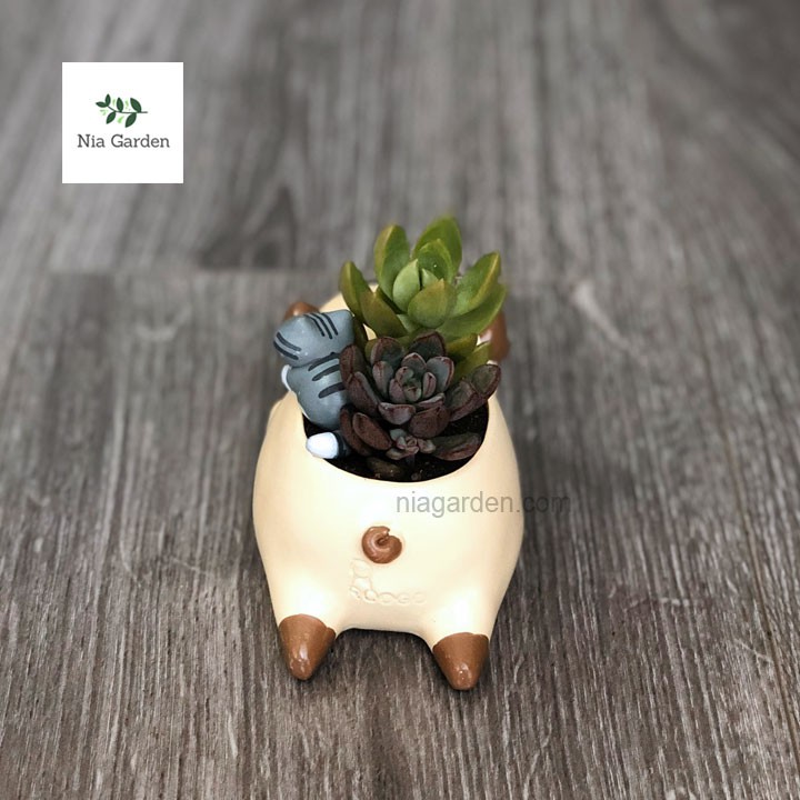 Nhà cửa & Đời sống > Làm vườn > Chậu cây || Chậu chó Pug ngủ chậu nhựa trồng cây để bàn sen đá mini xương rồng Nia Garden N4Còn hàng