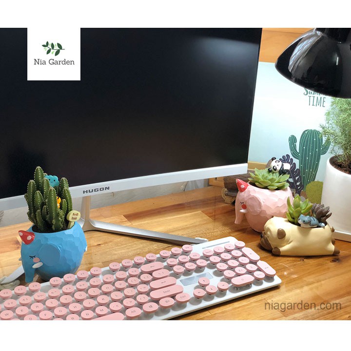 Giới thiệu Chậu chó Pug ngủ chậu nhựa trồng cây để bàn sen đá mini xương rồng Nia Garden N4