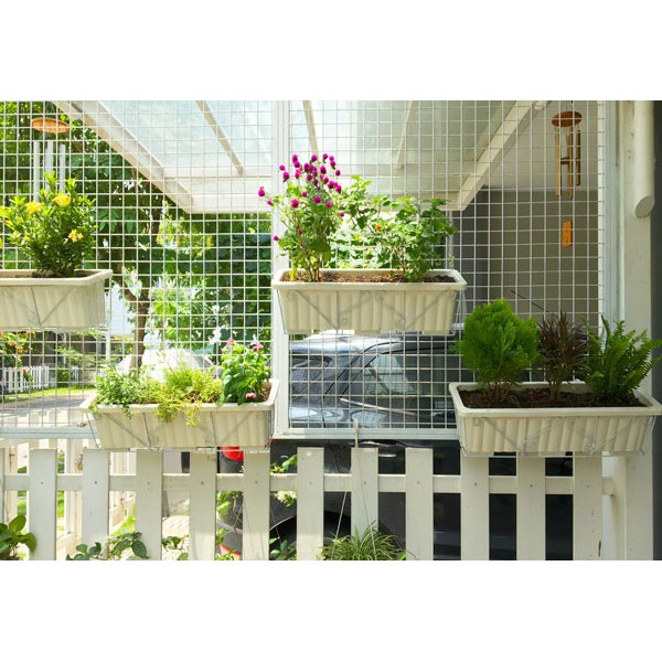 Với giá móc chữ nhật làm từ thép ống chắc chắn có thể treo móc trên bất cứ lan can ban công, hàng rào quanh nhà. Đồng thời, đặt chậu đã trồng cây vào giá móc, thế là bạn đã sở hữu được một không gian xanh ở ban công nhà mà vẫn tiết kiệm được diện tích đáng kể.
