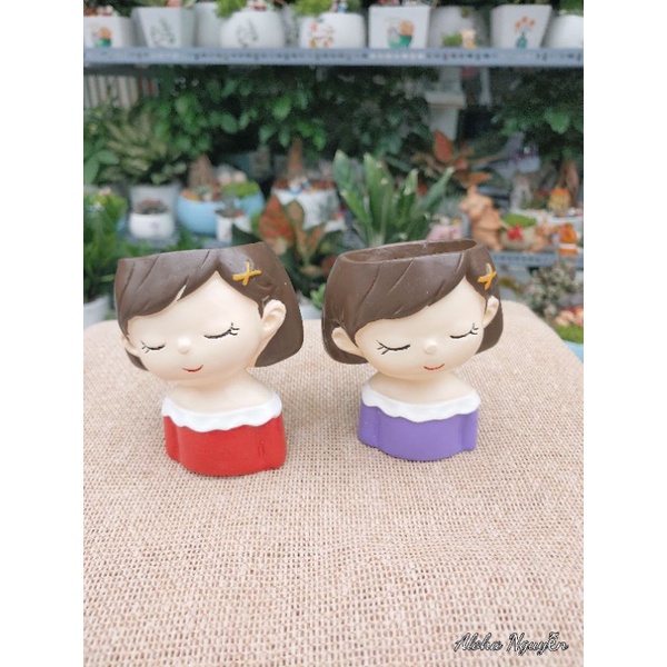 Chậu trồng cây để bàn hình cô gái dùng để trồng sen đá và các cây nhỏ.👉sản phẩm mới 100 %