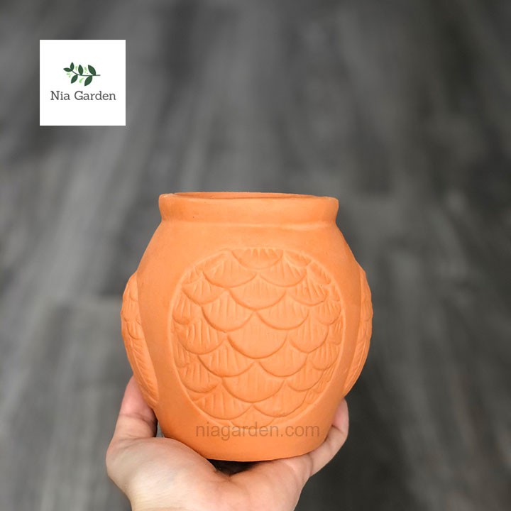 Chậu cú lu đất nung trồng cây cảnh sen đá xương rồng mini để bàn Nia Garden N4