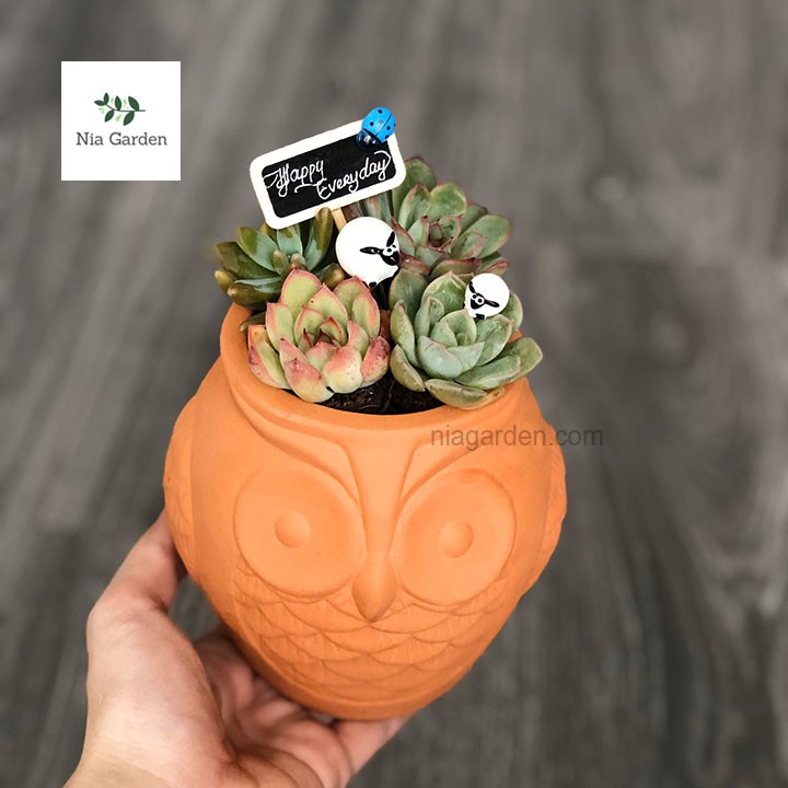 Nhà cửa & Đời sống > Làm vườn > Chậu cây || Chậu cú lu đất nung trồng cây cảnh sen đá xương rồng mini để bàn Nia Garden N4Còn hàng