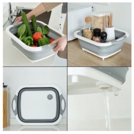Chậu đa năng gấp gọn thông minh 3 in 1 kiêm thớt trong rổ gập kèm rá rửa rau nhựa nhà bếp tiện dụngSản phẩm hướng tới một xu hướng gọn nhẹ và đa dụng cho căn bếp của bạn. Một chiếc chậu rửa gấp gọn hay một cái thớt nhựa có thể biến thành chậu rửa. Đây là một sản phẩm vô cùng tiện lợi và đa năng cho các chị em nội trợ. Sản phẩm được làm bằng nhựa và cao su cao cấp an toàn cho sức khỏe người sử dụng. Có độ bền cao.
