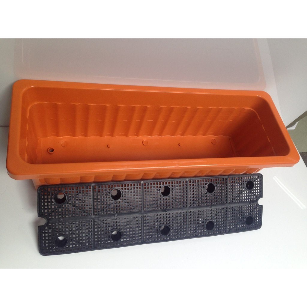 Chậu chữ nhật dài nhỏ được làm bằng nhựa PP bền chắc, có tấm lưới lót giúp trữ nước và ngăn đất không rơi vãi khi tưới cây.