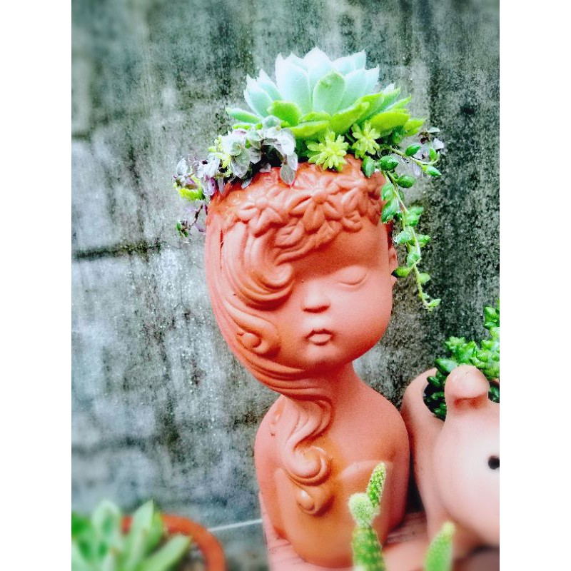 Chậu đúc thành mô hình bức tượng cô gái nhỏ xinh xắn, trang trí nội ngoại thất đều đẹp☺️