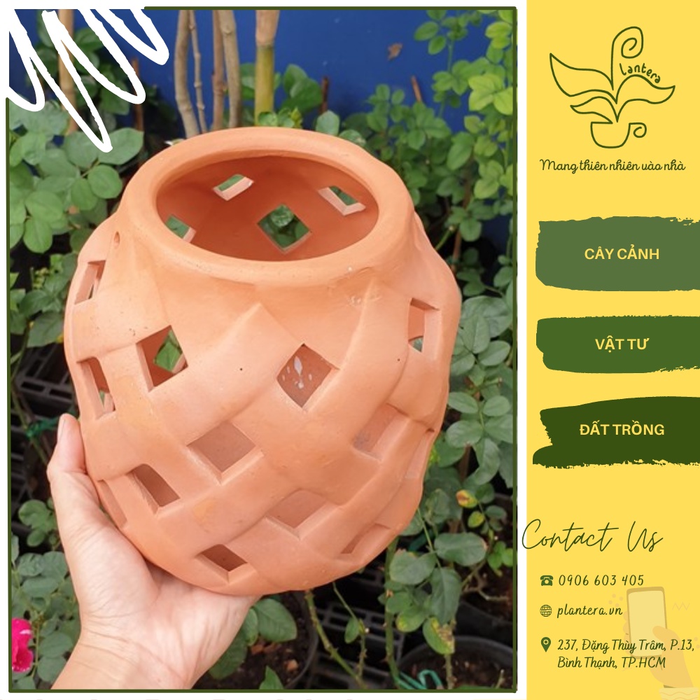 Chậu đất nung decor treo lộng caro - Khay Chậu - Chậu Đất Nung - Chậu Đất Nung Decor Đặc Biệt