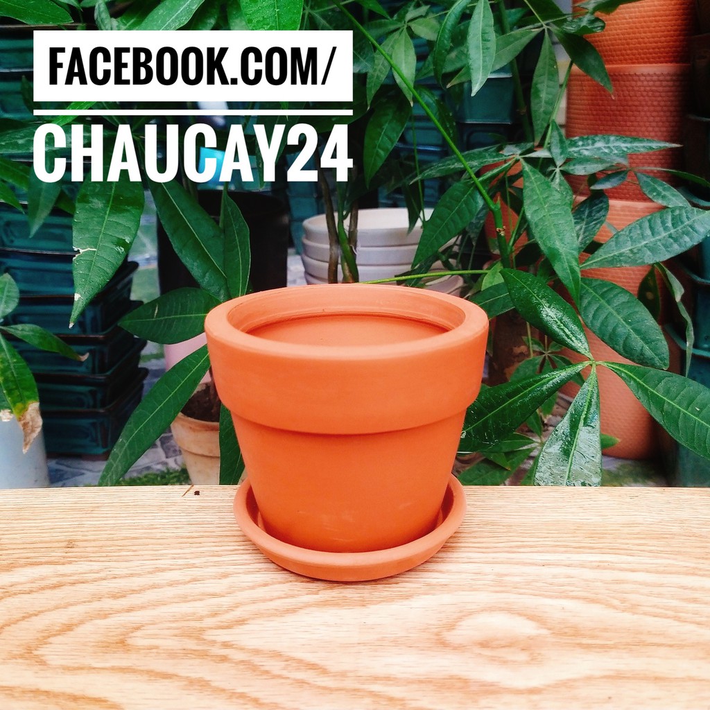 Chậu đất nung (KÈM DĨA LÓT) KT 10x8 cm trồng cây hoa kiểng, sen đá, xương rông, cây may mắn
