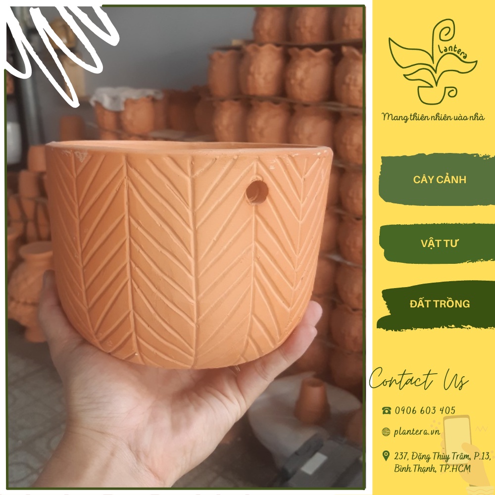 Chậu Đất Nung Nồi Treo Vân Xương Cá 17X13Cm - Khay Chậu - Chậu Đất Nung - Chậu Đất Nung Đường Kính 16-20Cm