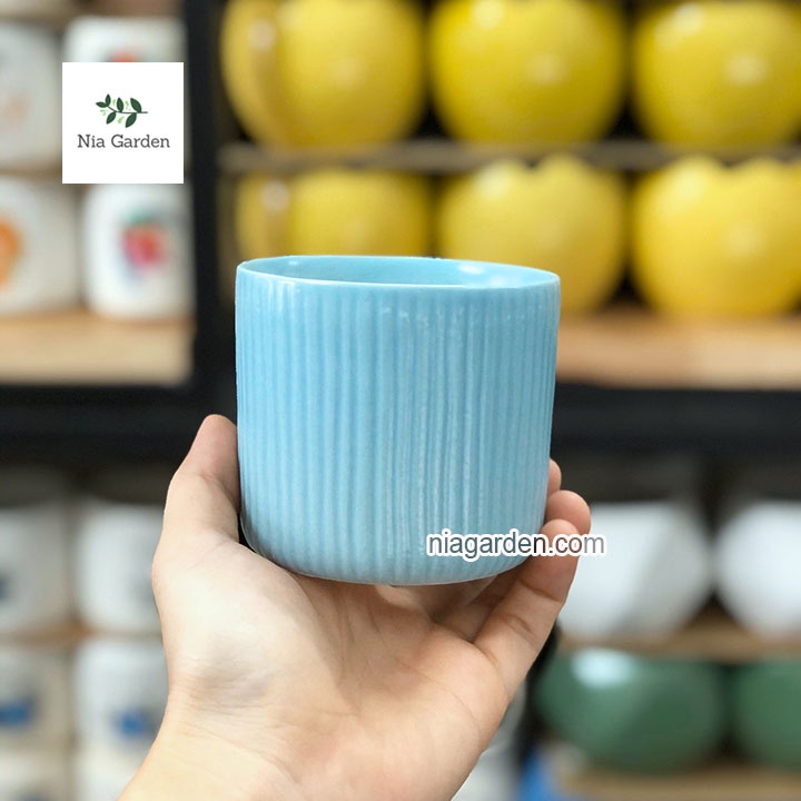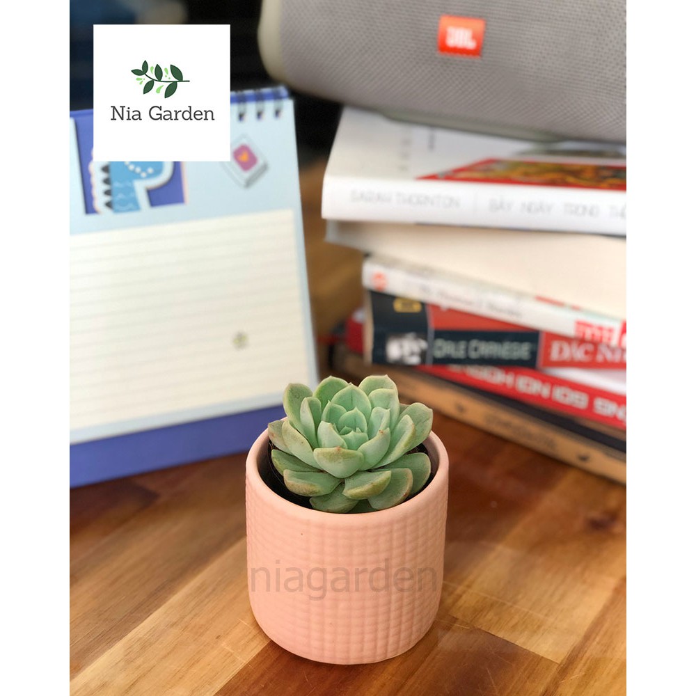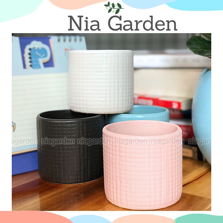 Giới thiệu Chậu đất nung tráng men sứ trụ nhỏ kẻ mini trồng sen đá cây để bàn Nia Garden N1